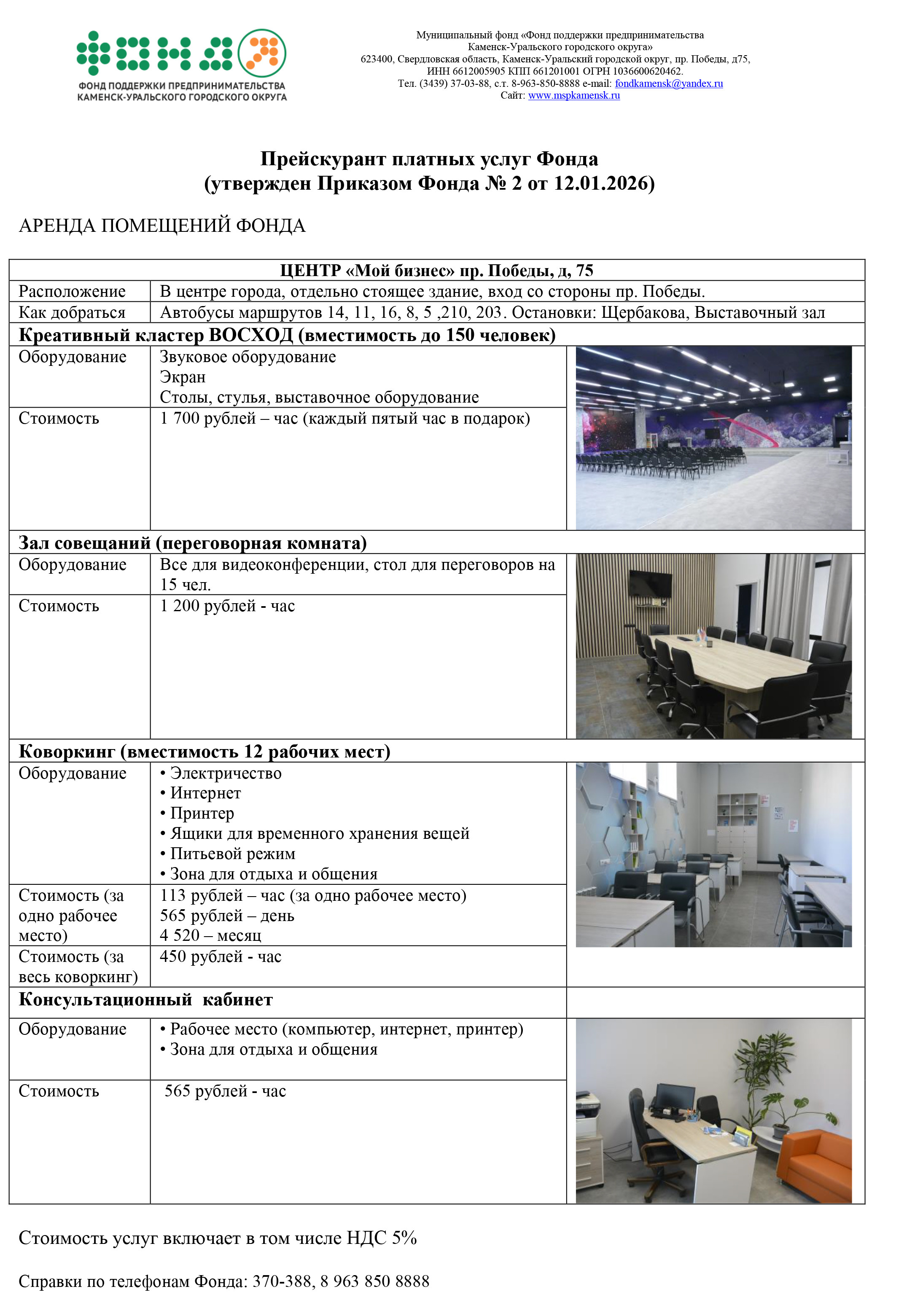 Для аренды подходящего обрадованного помещения для вашего делового мероприятия обращайтесь в Центр "Мой бизнес" в будни по адресу пр. Победы, 75